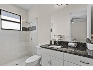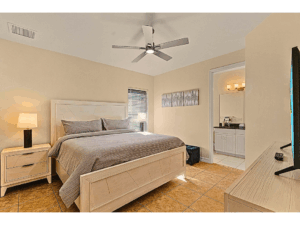 Die Villa bietet Platz für bis zu 8 Personen in vier komfortablen Schlafzimmern. Drei Zimmer verfügen über Kingsize-Betten, eigene Bäder mit begehbarer Dusche, Flat-TVs und viel Stauraum. Die Master-Suite bietet direkten Zugang zum Pool und ein Luxusbad. Das vierte Schlafzimmer mit Queensize-Bett, Schreibtisch und Poolbad rundet das Angebot ab. Handtücher, Föhne und Strandtücher sind inklusive.